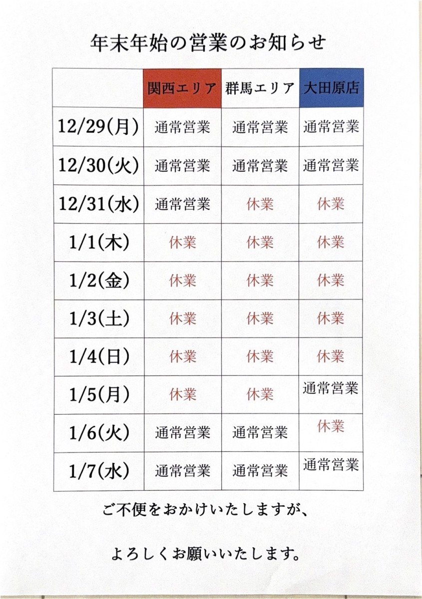 ※エリア、店舗によってお休みが異なりますのでご注意ください。