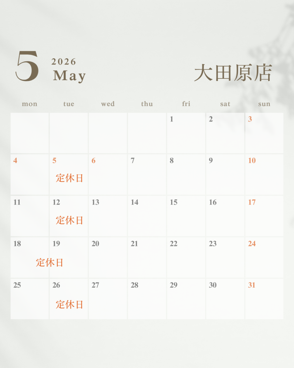 5月営業カレンダーのお知らせです。