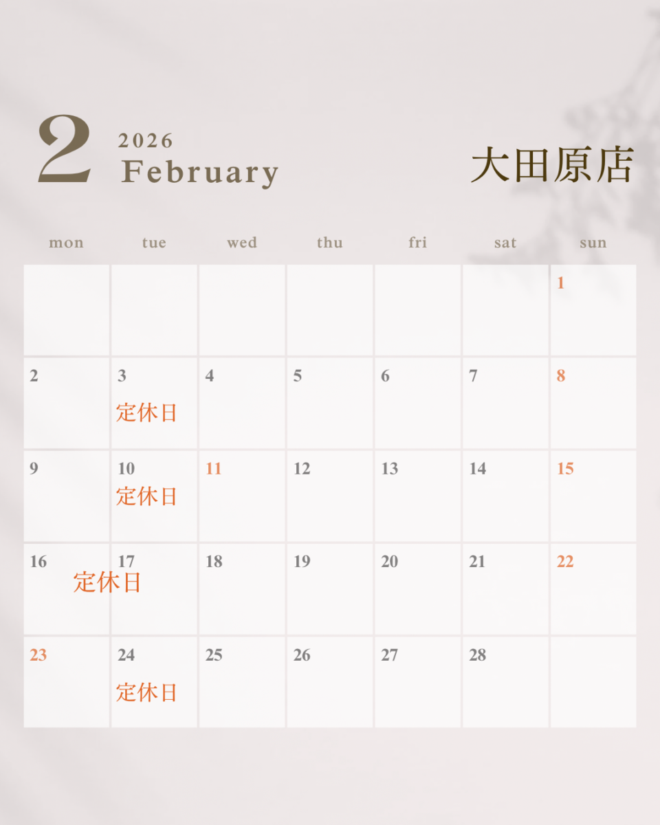 2月営業カレンダーのご案内です。